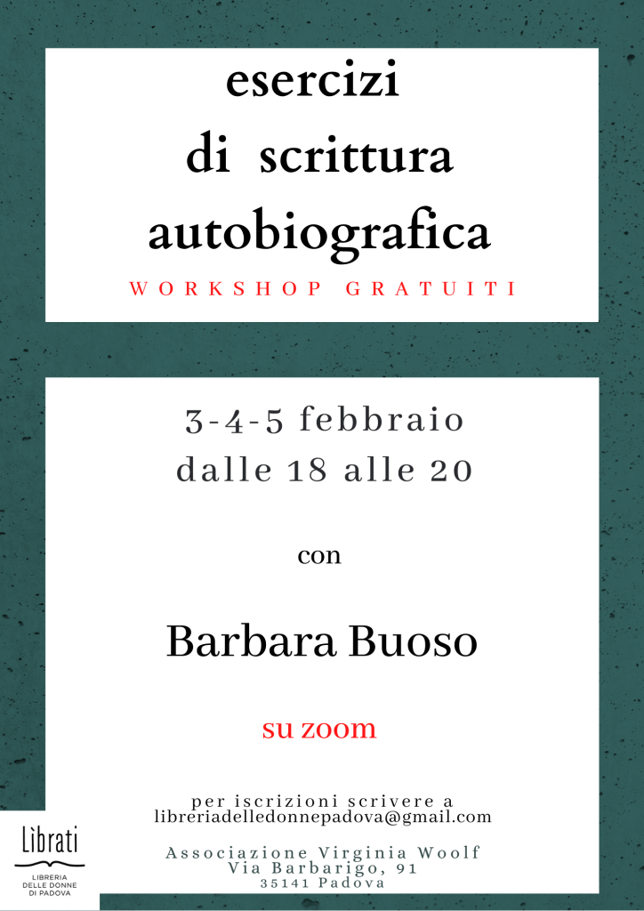 inviare una mail a libreriadelledonnepadova@gmail.com con indicato in oggetto “Conferma partecipazione corso autobiografia”